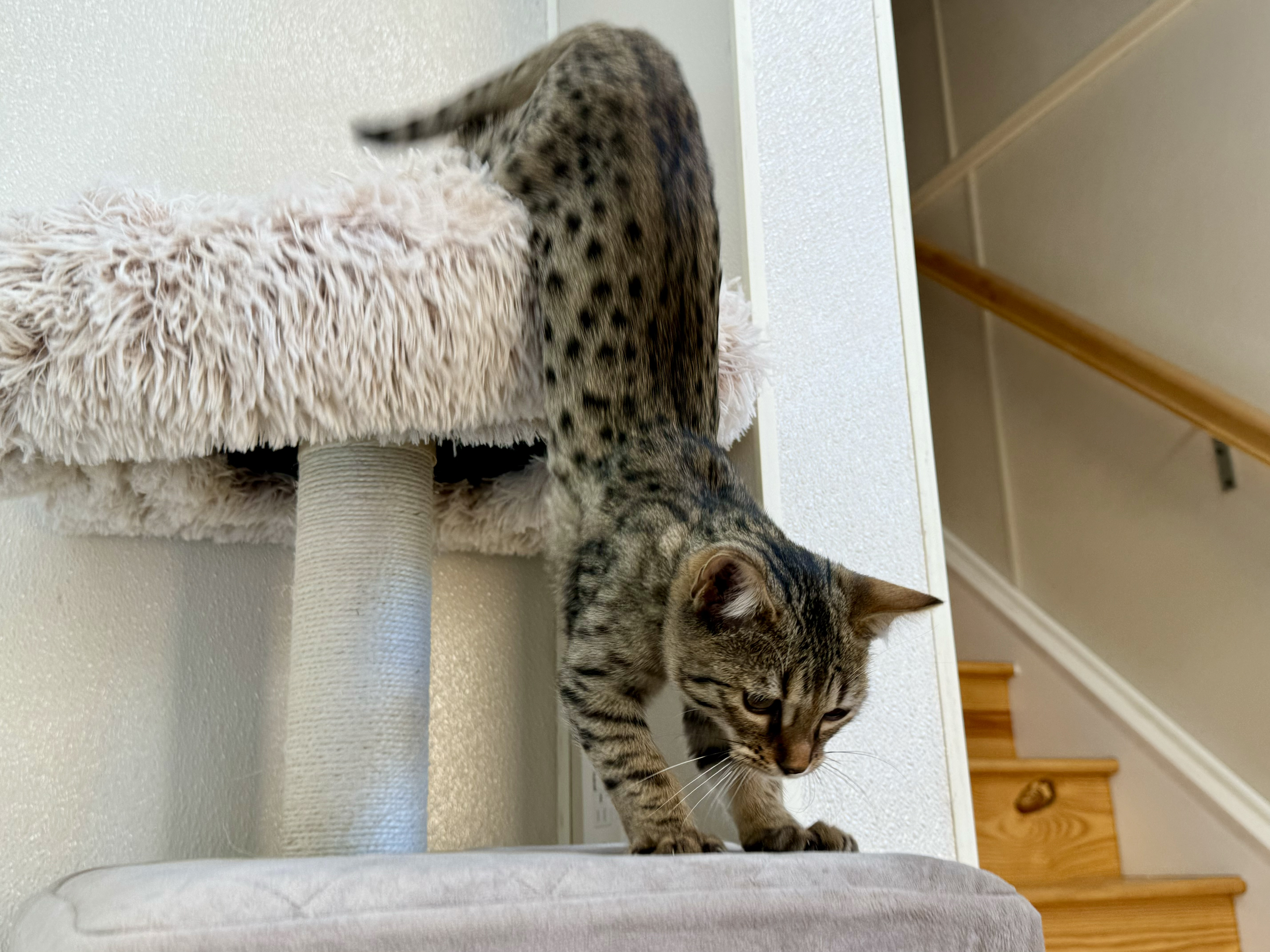 Our kittens are cherished and carefully raised with your family in mind. They come from exceptional Savannah lines with strong health histories and the exotic beauty the breed is known for. Many of our parent cats are directly from distinguished bloodlines, ensuring both quality and authenticity. Each kitten is handled and socialized daily, giving them the confidence and affectionate nature Savannahs are loved for.